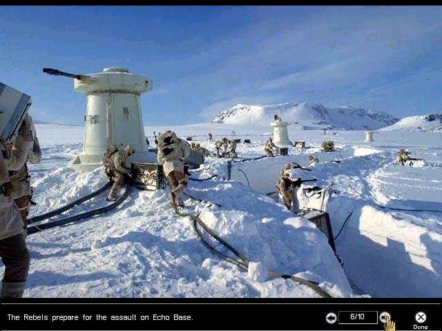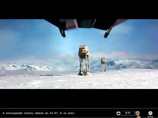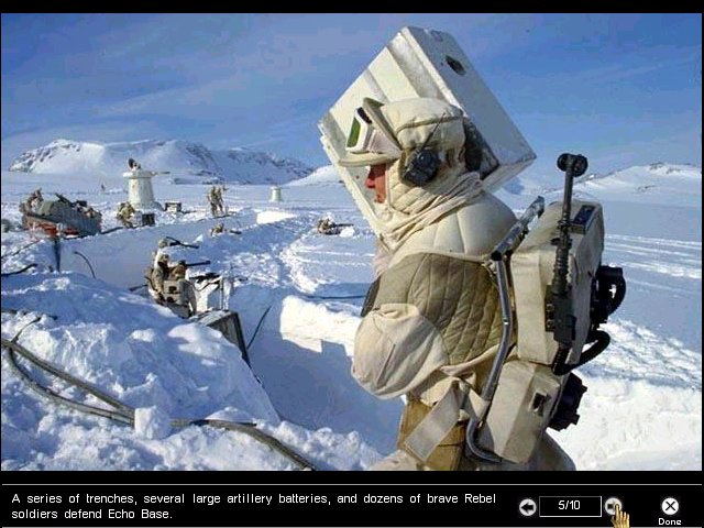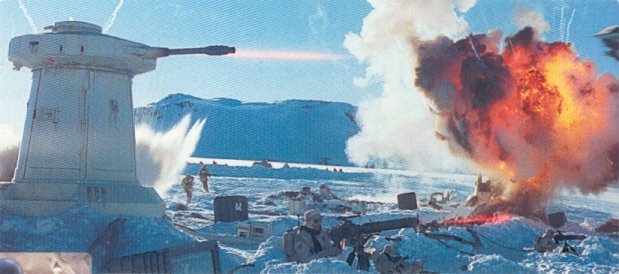 Above is the background image for a view of the site where Luke Skywalker destroyed an AT-AT walker. This occurred later in the battle than Wedge's kill, so it ought to be at a place south of the shield mountain [described above].