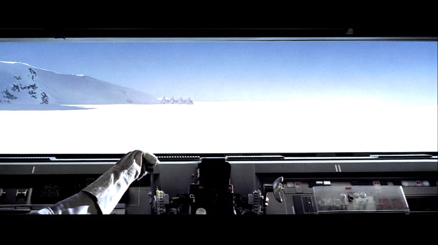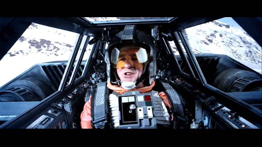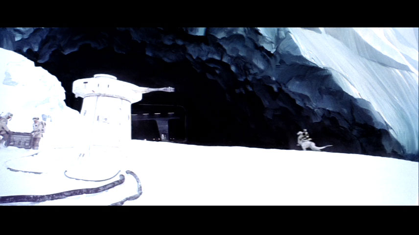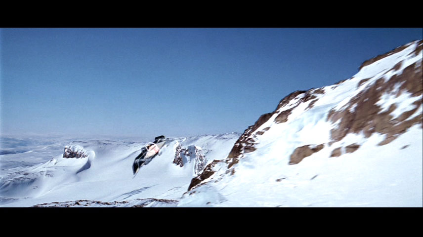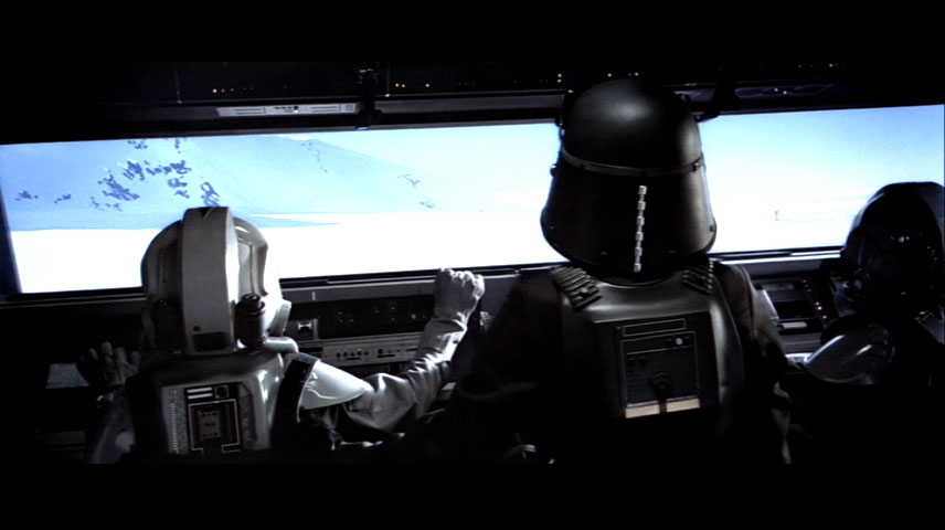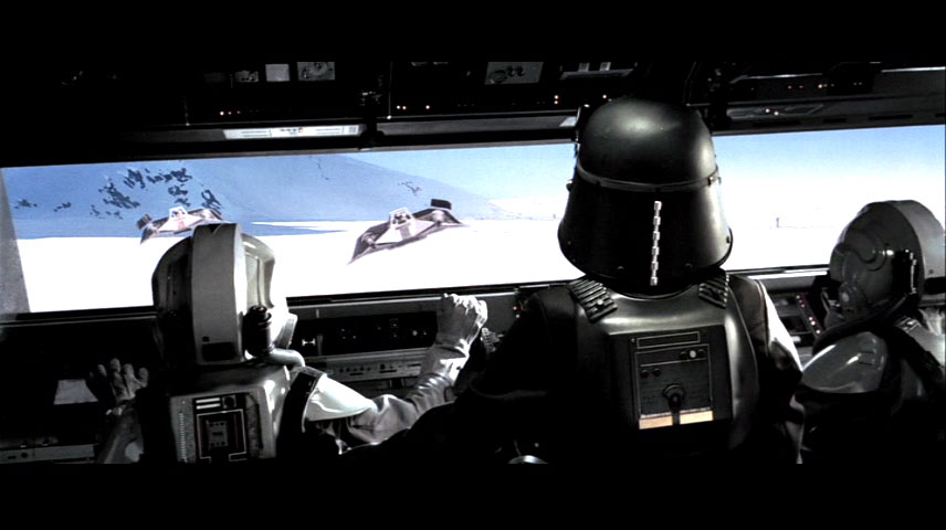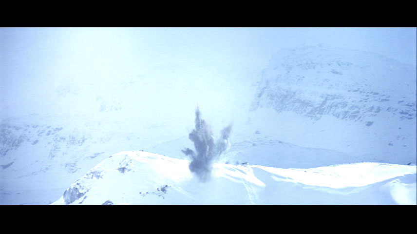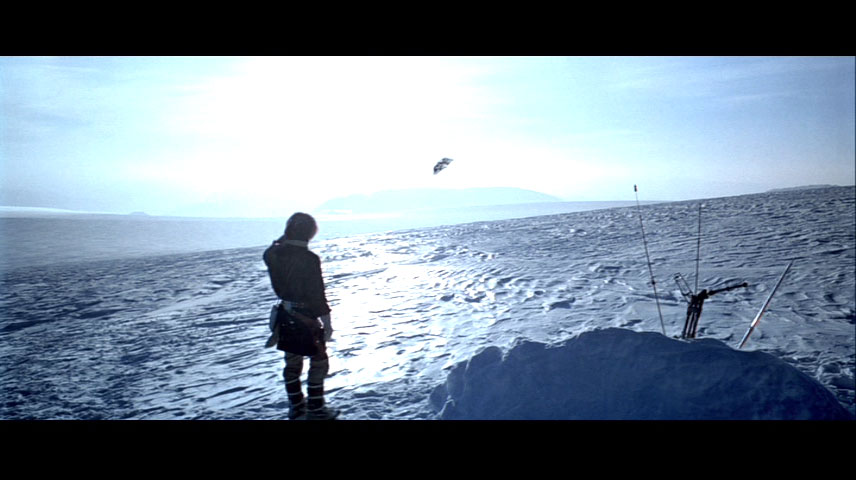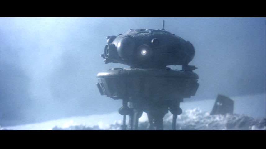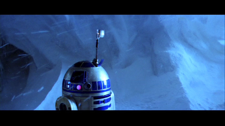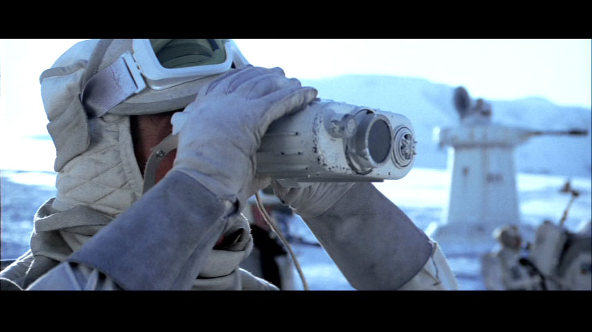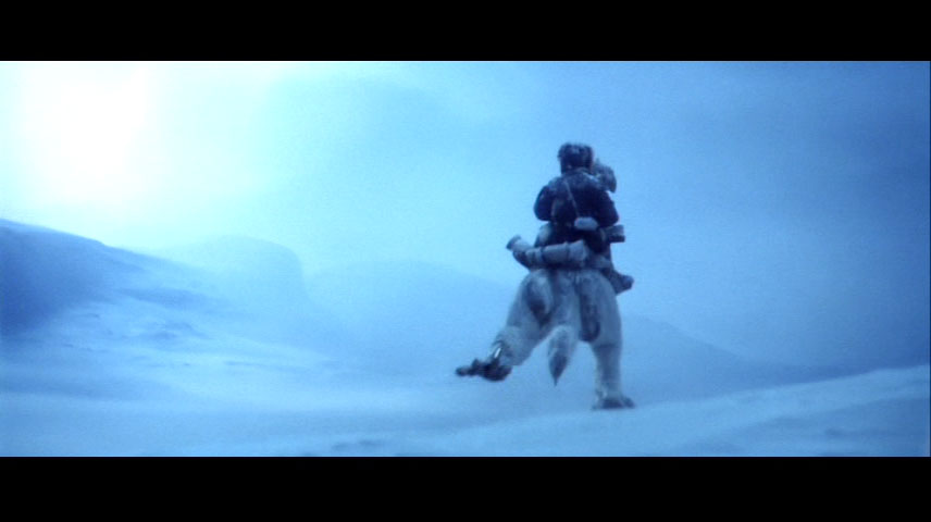 The probot landing scene is afflicted with a blooper. The event is shown twice, once from a universal, impersonal perspective and once as viewed by Luke Skywalker. Both shots are the same except that one of them is a mirrored image of the other. Which one is real? There are several restrictions. Luke Skywalker had a line of sight to the impact site. There is a steep mountain range nearby, and Luke was not on it. He rode across a flat plain with snowdrifts and little rock.