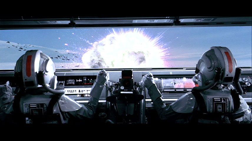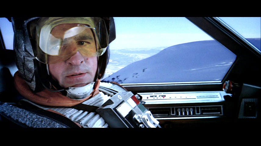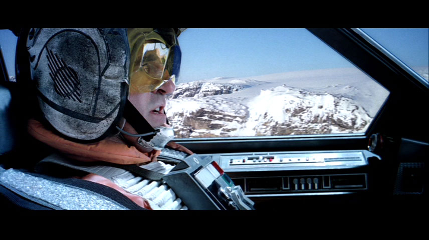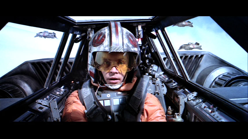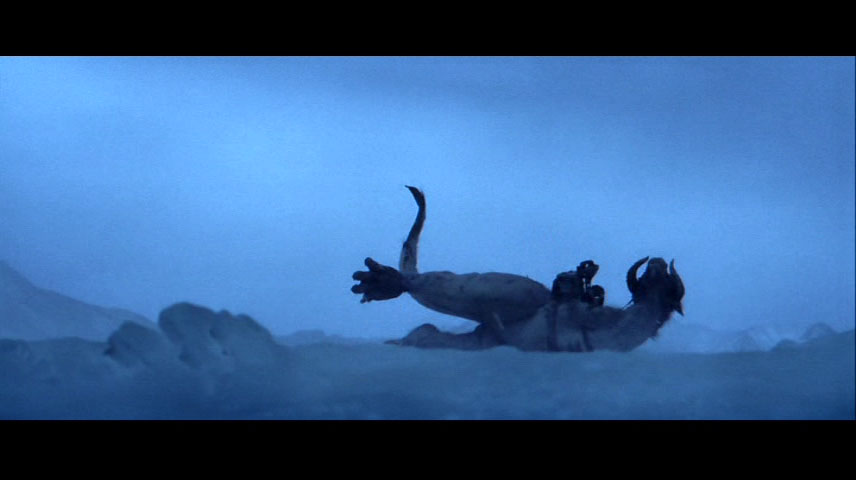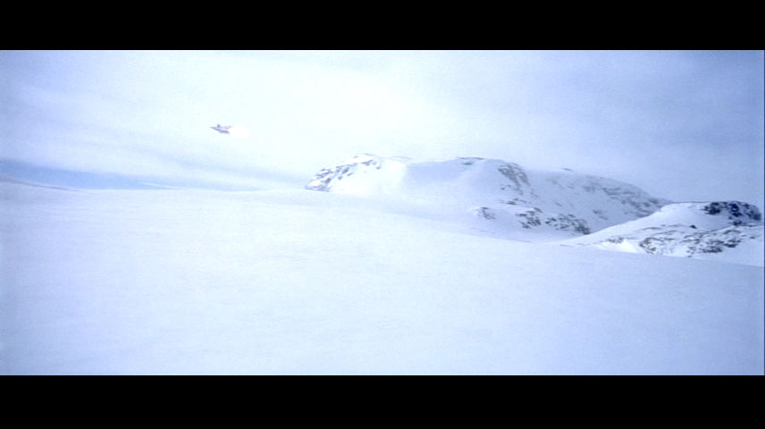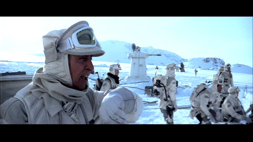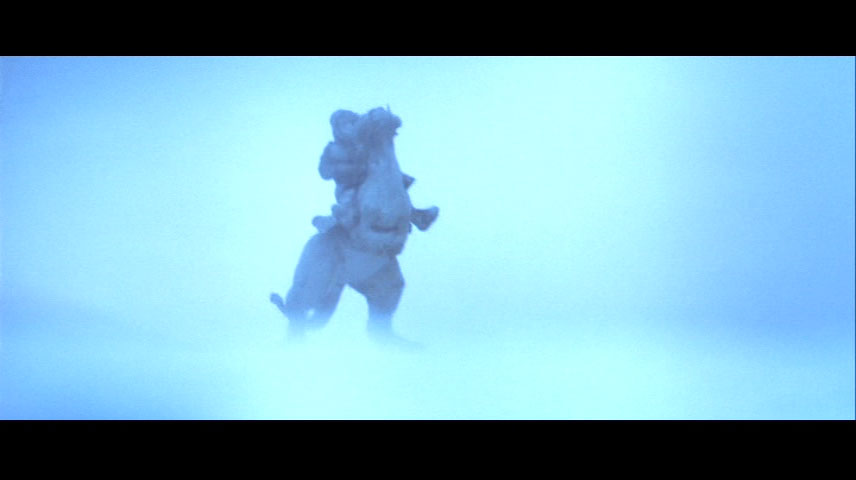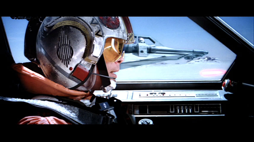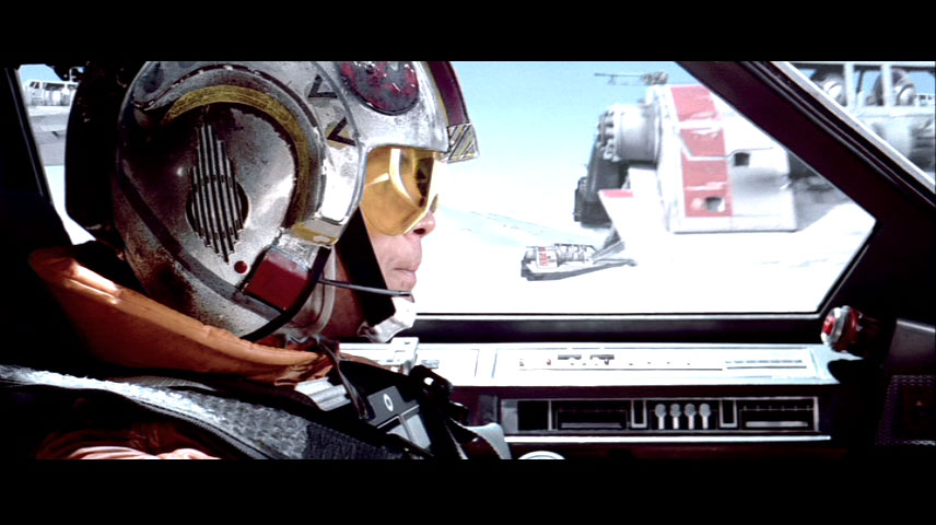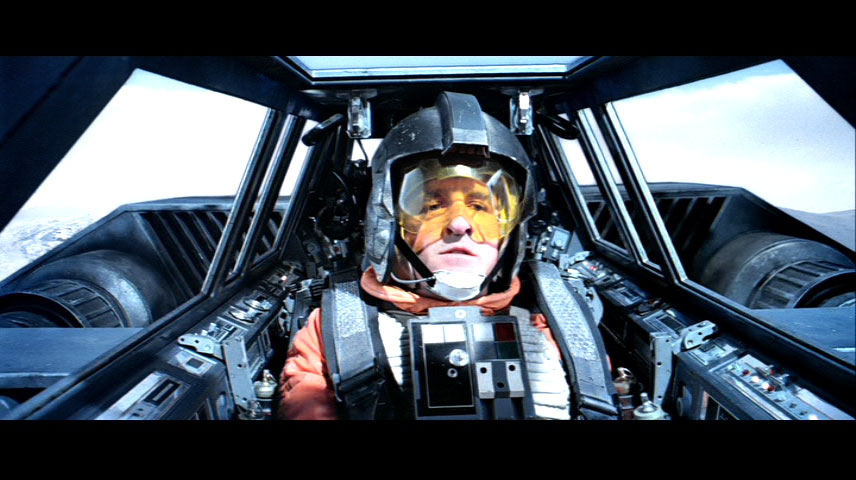 The probot landing scene is afflicted with a blooper. The event is shown twice, once from a universal, impersonal perspective and once as viewed by Luke Skywalker. Both shots are the same except that one of them is a mirrored image of the other. Which one is real? There are several restrictions. Luke Skywalker had a line of sight to the impact site. There is a steep mountain range nearby, and Luke was not on it. He rode across a flat plain with snowdrifts and little rock.
