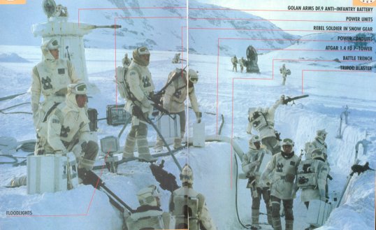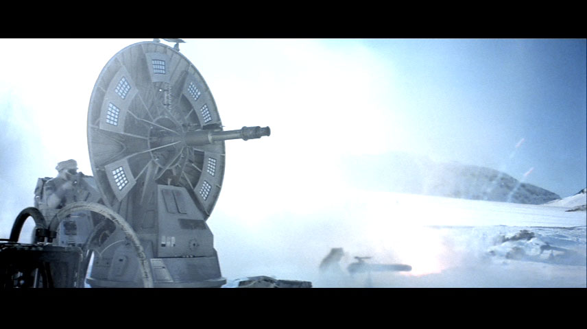 I tentatively place the ion cannon on the south side of the mountain range that contains the main part of the rebel base. The entrance seen in the movies would be on a different face of the range. The South Entrance is somewhere near the ion cannon, and Wedge Antilles passed the remains of the ion cannon as he made his way to the parked X-wings.