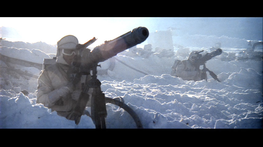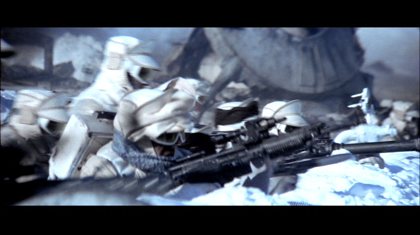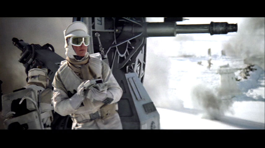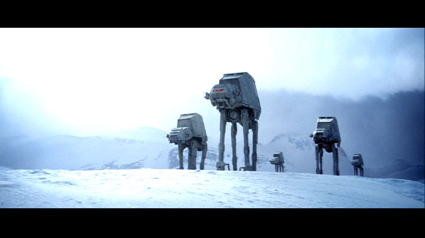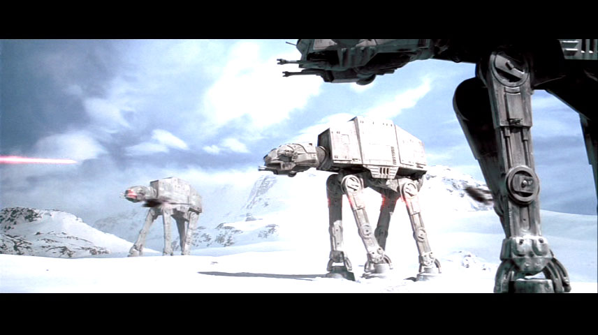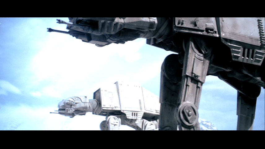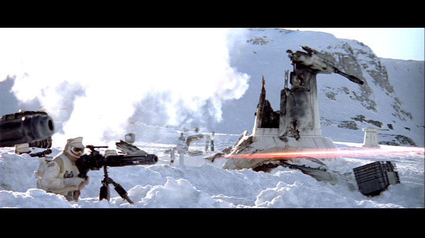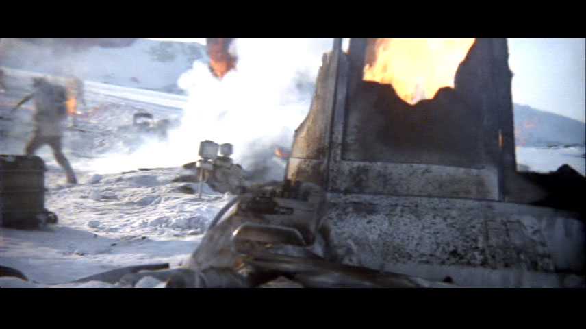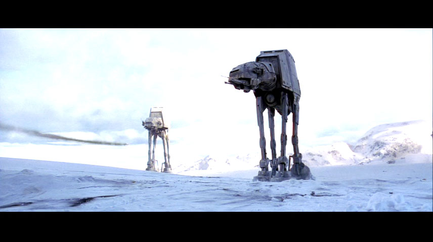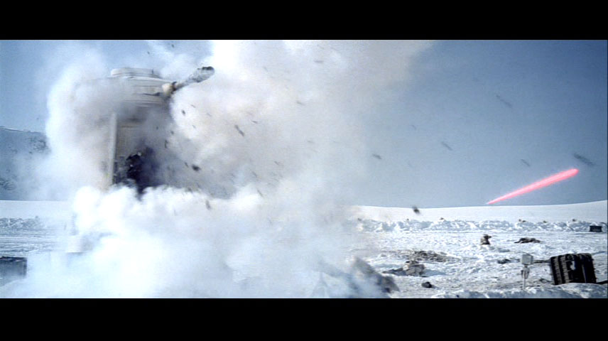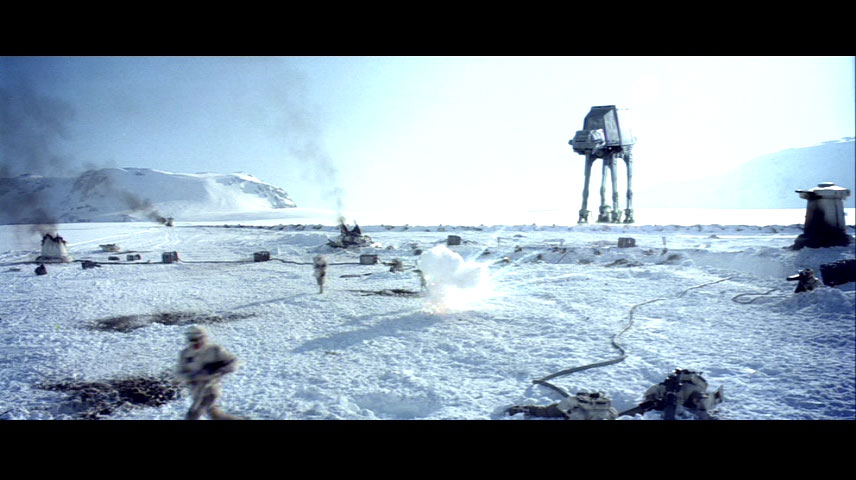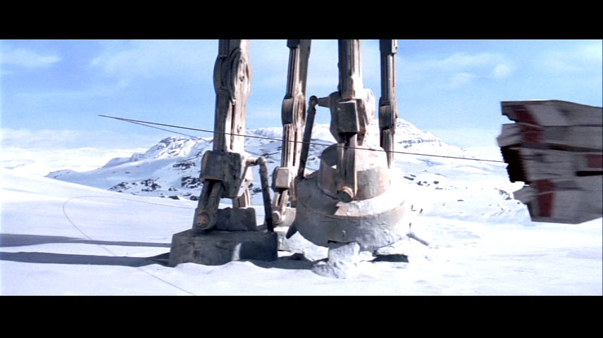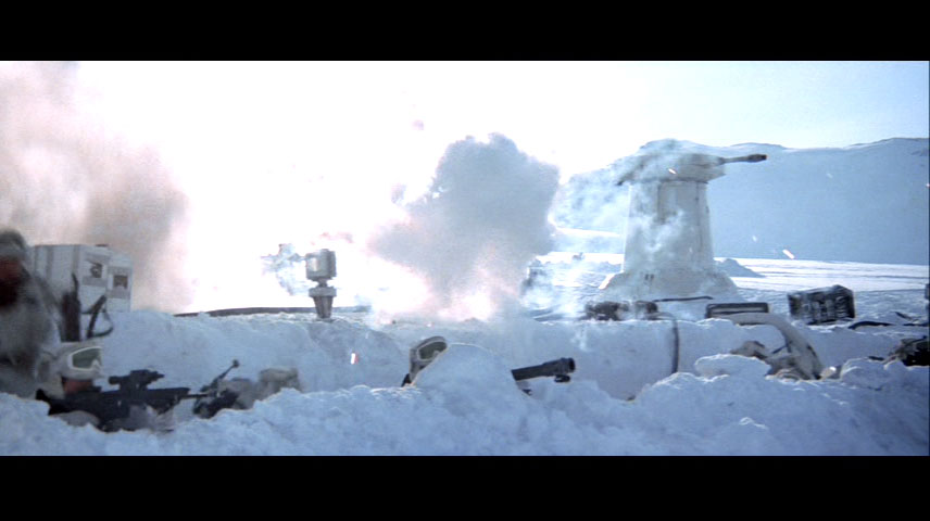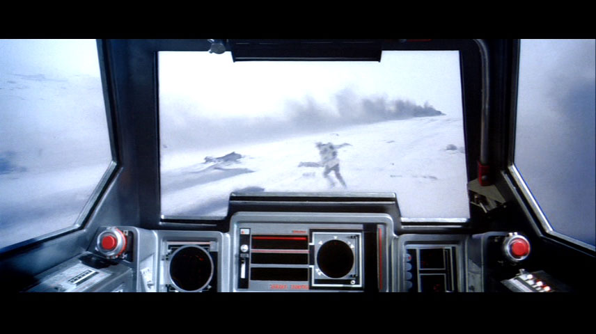 Luke attacked the hindmost of the two AT-ATs that were visible immediately before his crash. In the image above, we see that a third AT-AT walker had advanced less far than the previously visible pair. The lead walker is out of sight, probably off the left edge of this image.