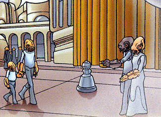 More recent references paint a peculiar and frightening picture of the status of the Mon Calamari in the final decades of the Old Republic. In his youth, Obi-Wan Kenobi knew a Jedi initiate belonging to the Mon Calamari species [The Rising Force, p.17]. This suggests that the Jedi regularly abduct Force-strong children from pre-contact primitive civilisations. Secondly, the Black Sun criminal organisation included a Mon Calamari official long before Palpatine's chancellorship. Before his elimination [Darth Maul], Vigo Morn kept alien henchmen in a fortress on his homeworld. Thus the relatively benevolent Jedi were not the only secret visitors to pre-contact Dac. While the general public remained unaware of the offworld civilisation, elements of the criminal classes exploited contacts with their galactic counterparts.