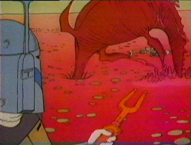 This large bloody-red horned monster dwells in the mud oceans of one of the moons of the Panna system, where Luke Skywalker met Boba Fett for the first time. This ferocious beast attempted to chew off sections of Skywalker's crashed Y-Wing starfigher until it was scared away by Boba Fett. The monster has the forward-facing eye-placement suitable for binocular vision, which is valuable for predators. Its diamond-shaped body tapers into a long thin neck and a short tail. Four flipper-like limbs propel the monster through the gelatinous mud. A dorsal row of jagged spiney plates runs along the spine and three sharp horns sprout from the back of the head. These may be weapons for killing prey or social fighting with other members of the same species (like antlers of deer or horns of rhinos). The creature seemed unaffected when Skywalker blasted it in the mount, it experienced excruciating pain when Fett zapped it with a distinctive two-pronged electric shock gun.