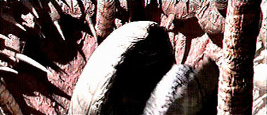 View from the Millennium Falcon inside the gut of a giant space slug, looking towards the mouth. Note the ridges and bumps on the upper surface, which seem to indicate the presence of internal support structures analogous to the ribs and spine of a vertebrate.