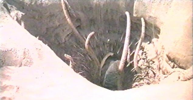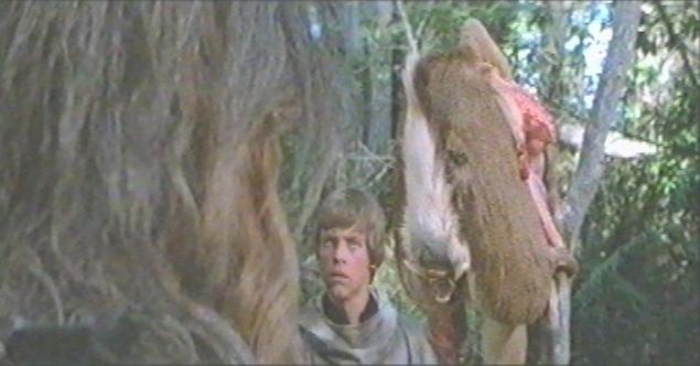 Several different views of the mutilated remains of the tusked animal, used as bait in a trap created by Ewoks.