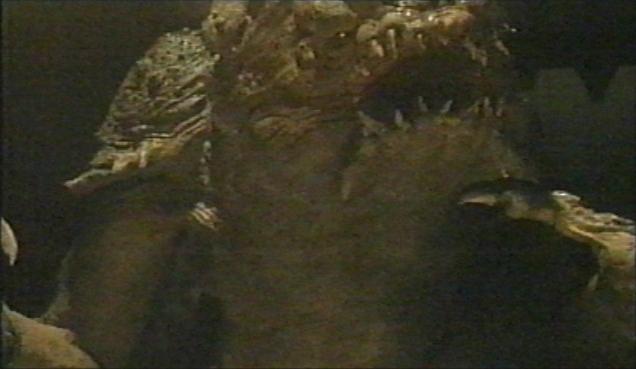 The rancor feeds on a gamorrean.