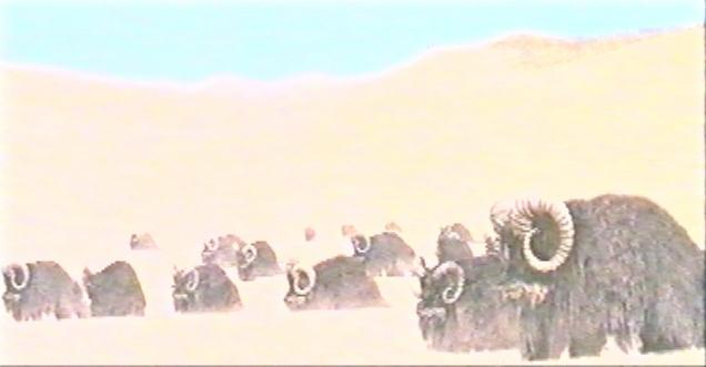 Tauntauns are readily-domesticated herd-living herbivores which roam the icy wastes of the sixth planet in the Hoth system. They feed upon fungal growths which can be found in sheltered ice caves, and beneath shallow snow. Tauntauns are the primary prey of the huge and vicious semi-intelligent wampas. Female tauntauns are distinguished from males by the presence of large curved horns on each side of the head. The horns are using in ritualised fights between females during the mating season. Tauntauns have four nostrils.