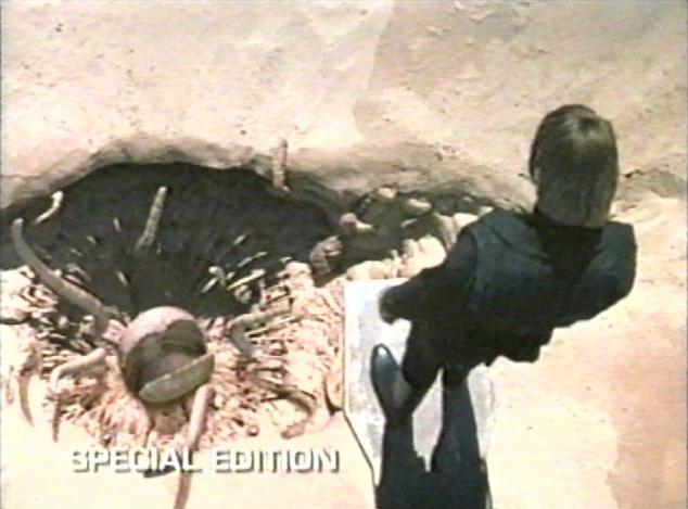 The water beast which swallowed R2-D2. In the first image a pair of human divers, obviously members of a foolhardy doomed zoological expedition, examine the creature's back. The second photograph shows a section of hide which has somehow been removed from an unfortunate specimen.