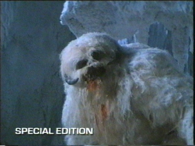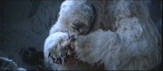 An apparently hornless wampa snarls and lunges at its unsuspecting victim.