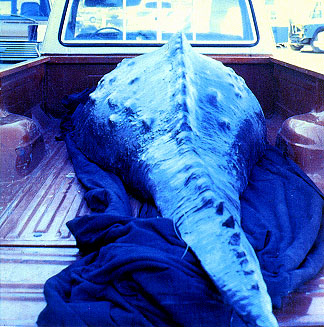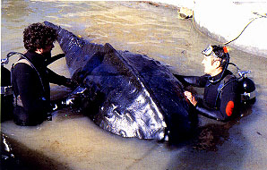 The water beast which swallowed R2-D2. In the first image a pair of human divers, obviously members of a foolhardy doomed zoological expedition, examine the creature's back. The second photograph shows a section of hide which has somehow been removed from an unfortunate specimen.