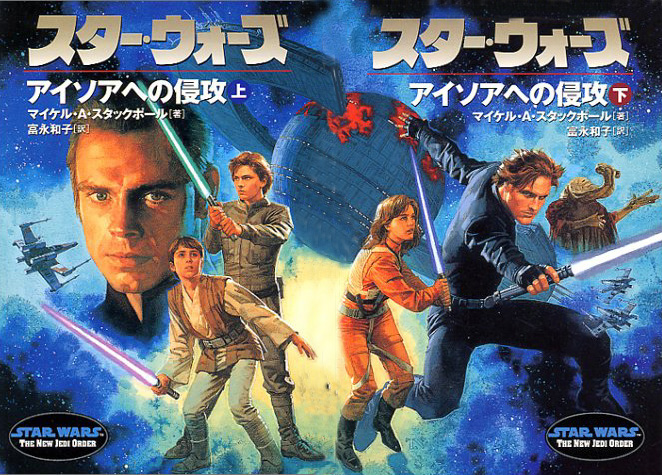 Earlier we posted some artwork from Japanese Star Wars Book Covers. Since then, Mike Hathaway took the divided halves of the art and recombined them and touched them up into complete images. The results are really impressive. They could make great wallpapers for your computer if ya like. Download them at the links below.