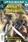 After being greeted by GG-36 "Gigi", Camper and Jarael are introduced to newly-arrived but experienced banker Arvan. At that point, we are introduced to Dob and Del Moomo, Ithorian brothers who are hired to keep a watch on their target. At first, we are made to think that they somehow recognized Camper and Jarael and hope the two fugitives will lead them to the big catch, Zayne Carrick. But that is a bit of a red herring as they then change from being observers to a more hands-on approach and run out to grab the banker Arvan, who is really their target for some reason that will hopefully be revealed in the next issue. Jarael fights back, and then she runs after the two hunters along with Camper. Meantime, Zayne and Gryph know that something is wrong and get out of the Last Resort where they were hiding to go investigate. They find Jarael taking care of Camper who slipped back into one of his mind-freezes, and by learning that the kidnappers are two Ithorians Gryph deduces who they are. Form what he knows about the Moomo brothers, Gryph says there is nothing to worry about: even Valius Ling (RIP, see issue #6) fired them for their incompetence. Zayne then rushes to catch up with the kidnappers.