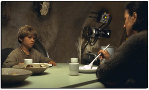 The picture below, from the official site, shows Shmi and Anakin at the dinner table: