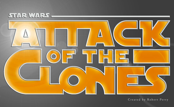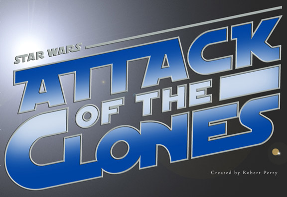 Update: Rob Perry has created some fantastic AOTC graphic titles styled along the lines of the "Star Wars" typeface. You can see his artistry here and here.