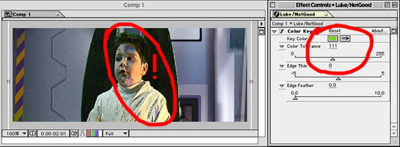 Creating a custom (blue)screen tutorial is an impossible task. No two keying operations are the same. Above are some broadbrush principles you can use to help you create better keys for yourself using Adobe After Effects 4. Try out these techniques, expirement with the settings and see what works for you. Hopefully this tutorial will be the first step in creating better bluescreen keys in your project. Good luck!