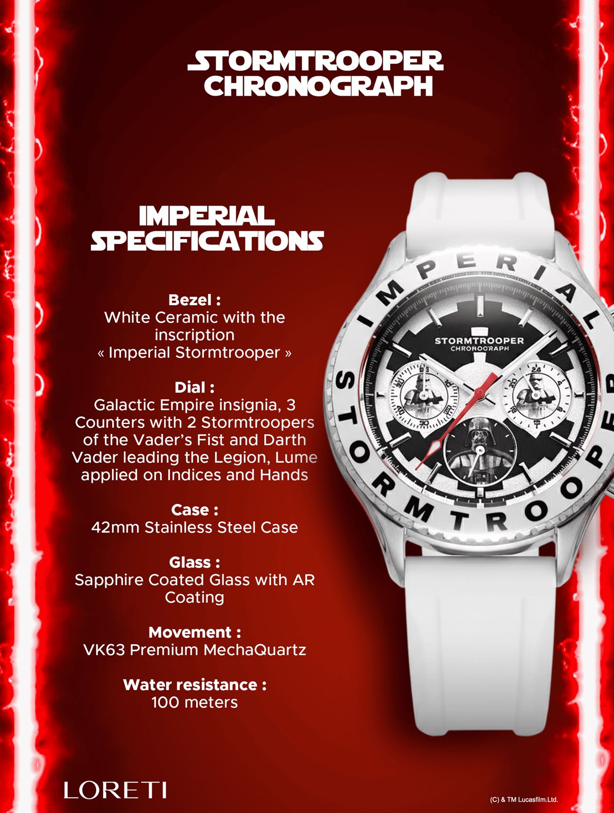 The second Fillippo Loreti x Star Wars limited edition timepiece reveal is the STORMTROOPER CHRONOGRAPH.