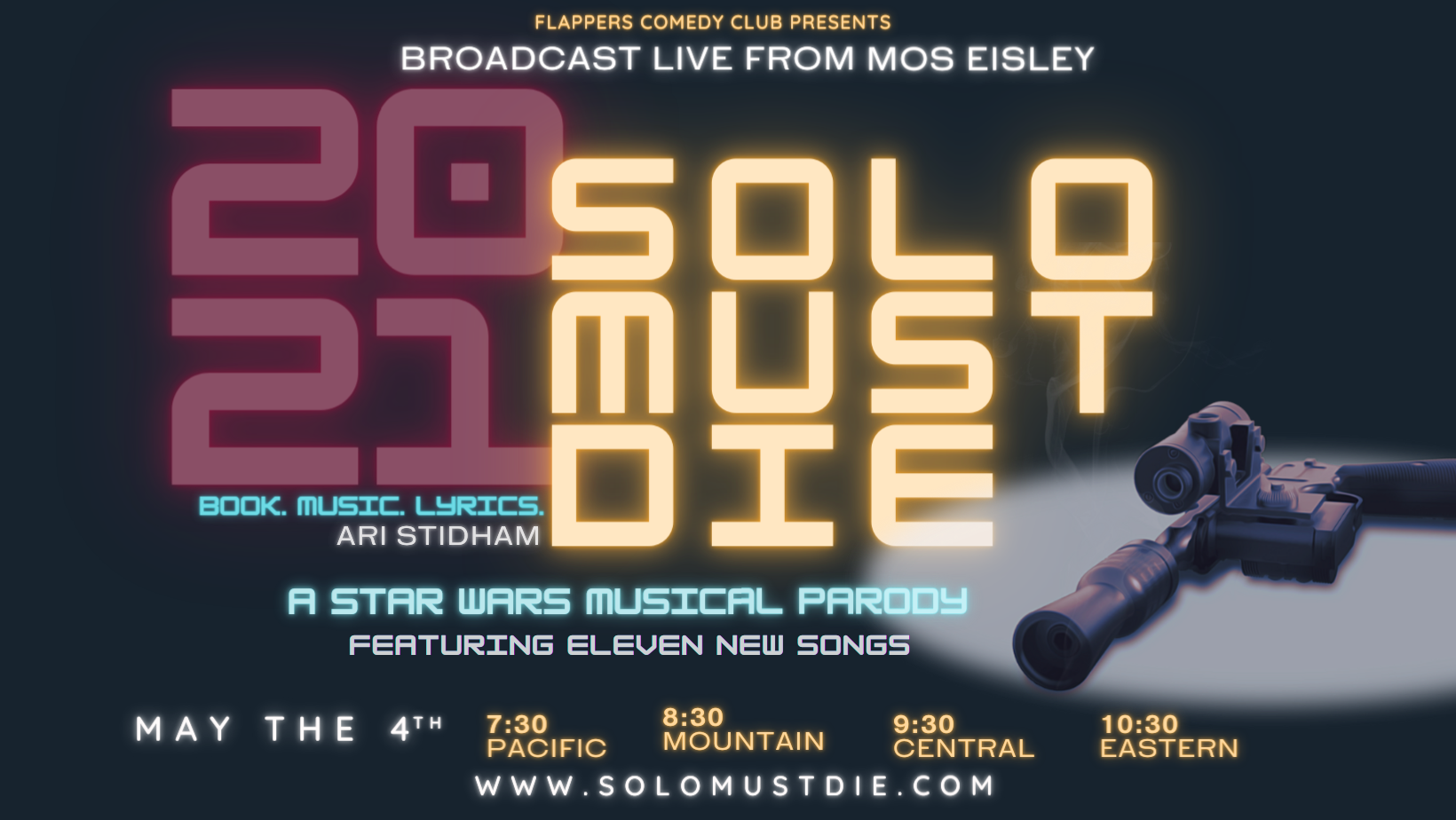 MAY 4 - SOLO MUST DIE: A STAR WARS MUSICAL PARODY IS BACK for ONE NIGHT ONLY ONLINE.