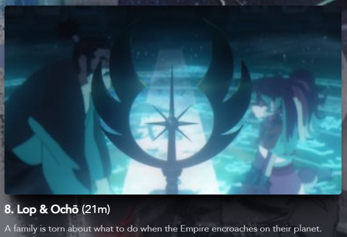 Lucasfilm partnered with seven of the top Japanese animation companies (Geno Studio, TRIGGER, Kamikaze Douga, Colorido, Kinema Citrus, Production I.G and Science SARU) to do something that had never been done before and the result is Star Wars: Visions, which is just that...the visions of some talented creators who were given the reigns to play in the Star Wars sandbox for the first time and tell the stories that they wanted to see. Each episode is completely different than the next and each one serves its own purpose. These do not seem to be held to the same canonical standards that we've come to know since Disney purchased the franchise and created the Lucasfilm Story Group who keeps track of each and every aspect of the storylines to ensure that everything meshes seamlessly. Rather, they are standalone stories that range in length from 14 minutes to 22 minutes and offer a brief glimpse into the lives of a several special characters that we've never seen before.