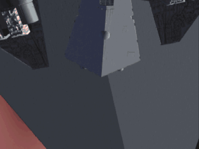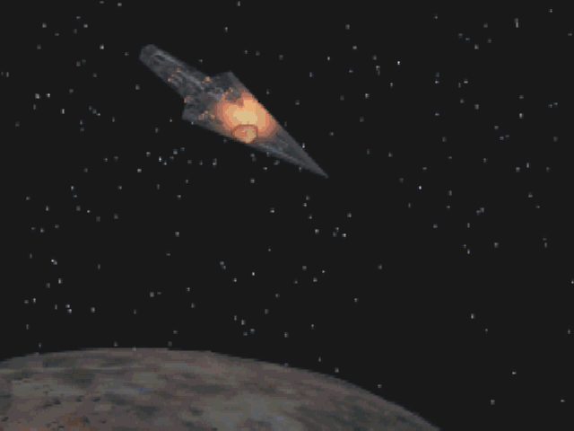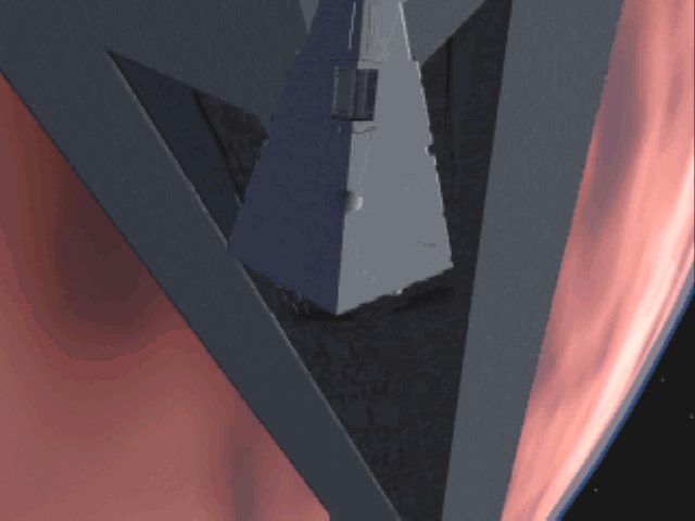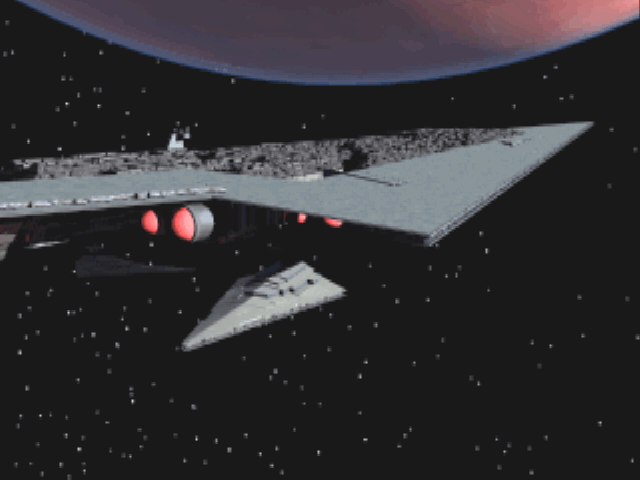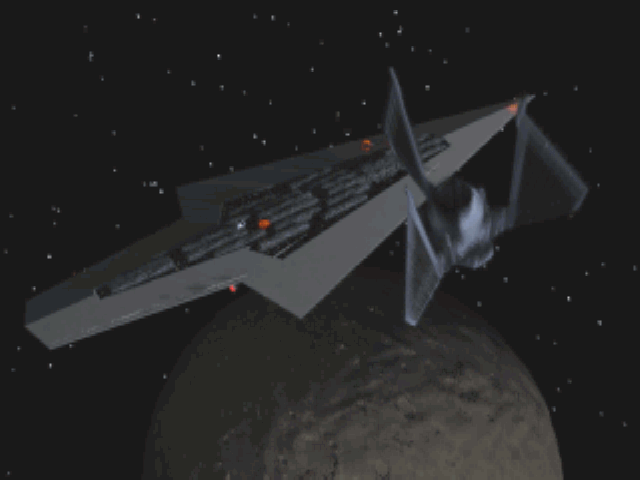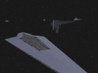 The Terror passes over a destroyer in LucasArts' Rebel Assault II. This sequence shows the ventral faces of both ships.