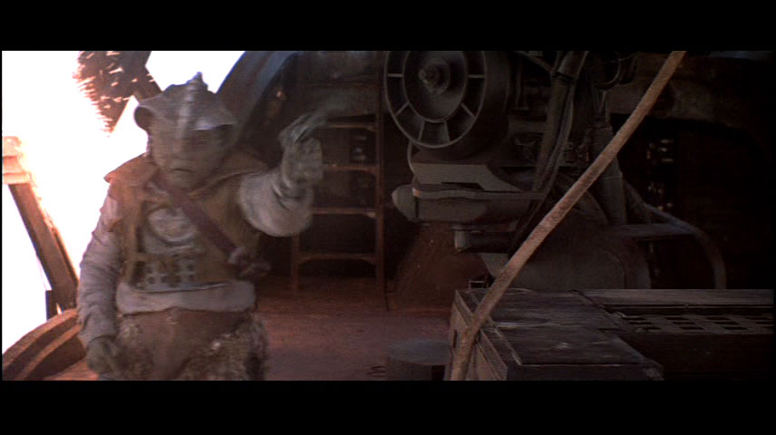 Armed with a jawa blaster. Somewhat rough cloak fabric. Stood in front of Ree Yees during the rancor fight. |