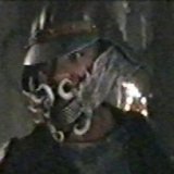 Inhabitant of the throne room; wears a metal helmet, and a thick woolen kilt over his grey trousers. Crept up behind Skywalker before the rancor fight. Stood between prisoners and Jabba when sentence was passed. Killed by a blaster bolt deflected by Skywalker on the deck of the sail barge. |